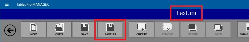 例えば、あらかじめTablet Pro MANAGERのレイアウト編集で「SAVE AS」で「C:\Folder\Test.ini」に保存しているとします。