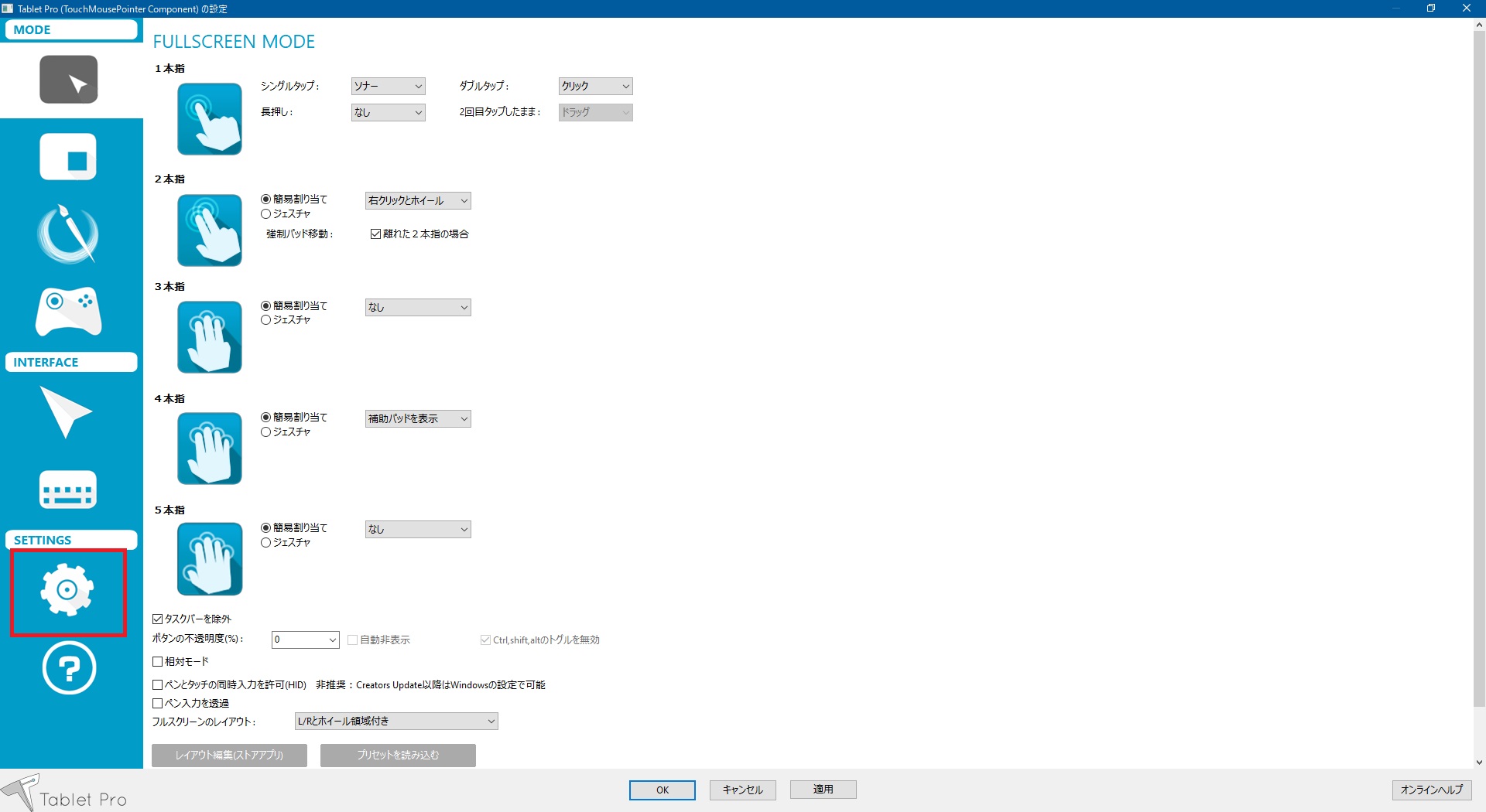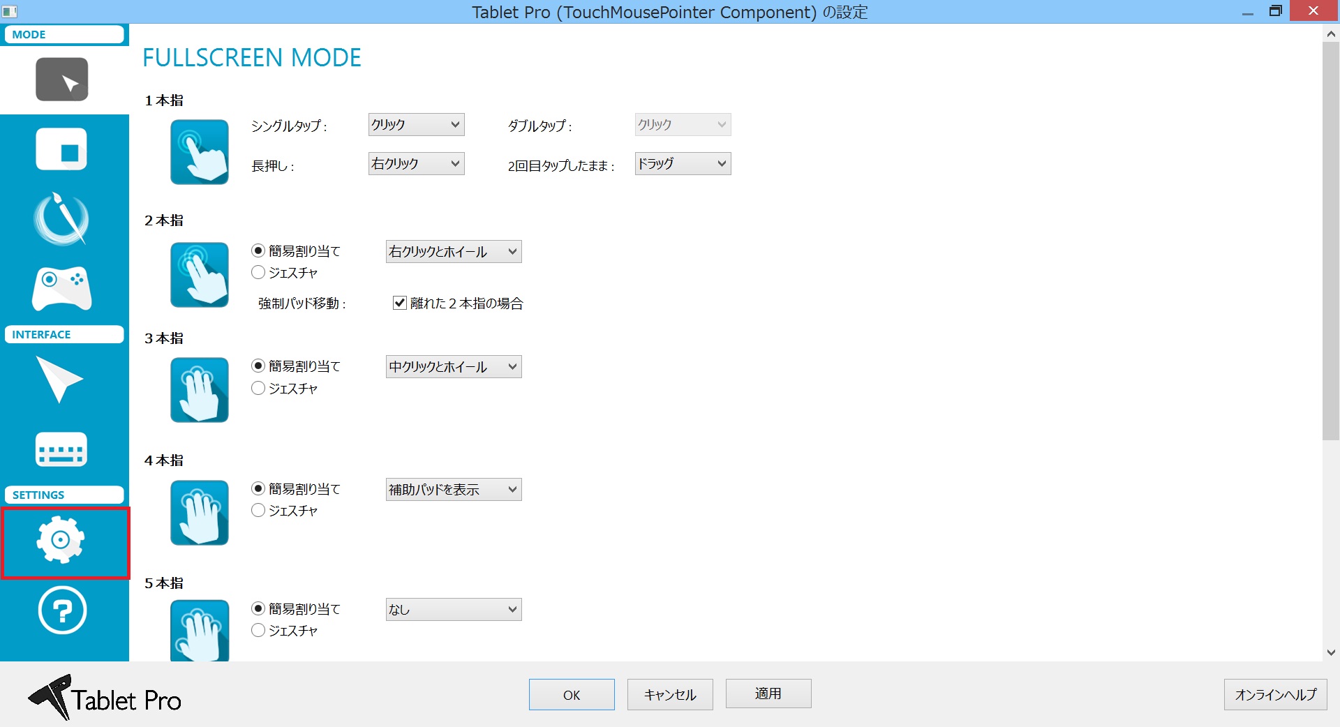 デスクトップアプリのTouchMousePointerの設定を開きます。