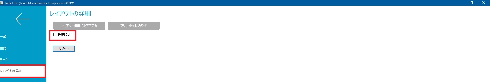 レイアウトの詳細で、「詳細設定」をOFFにします。