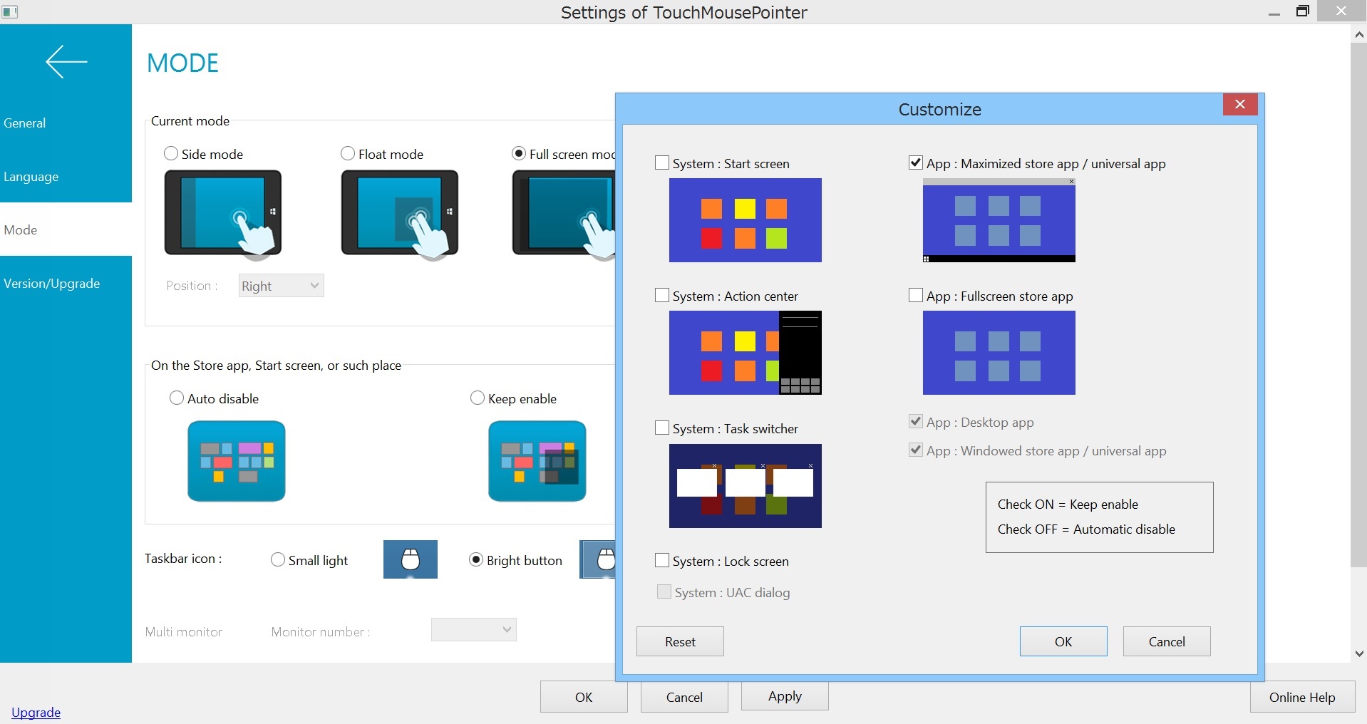 - Added new TouchMousePointerTray.exe. This is a small EXE dedicated to the notification area (corner icon) on the taskbar.