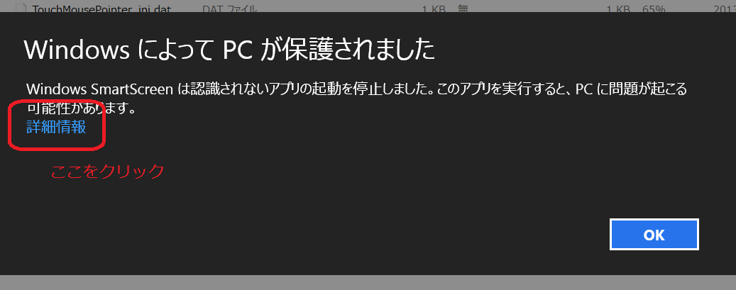 「WindowsによってPCが保護されました」が出た場合は「詳細情報」をクリックしてインストールできます。