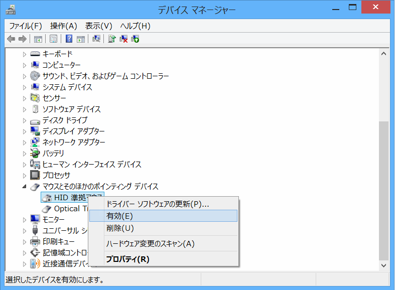 - もしポインティングデバイスが1つでも有効になっていたら、Windowsのシステムはマウスカーソルを表示します。