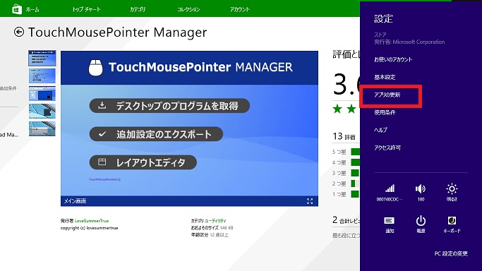 TouchMousePointer Manager アップデート方法(ストアアプリ)